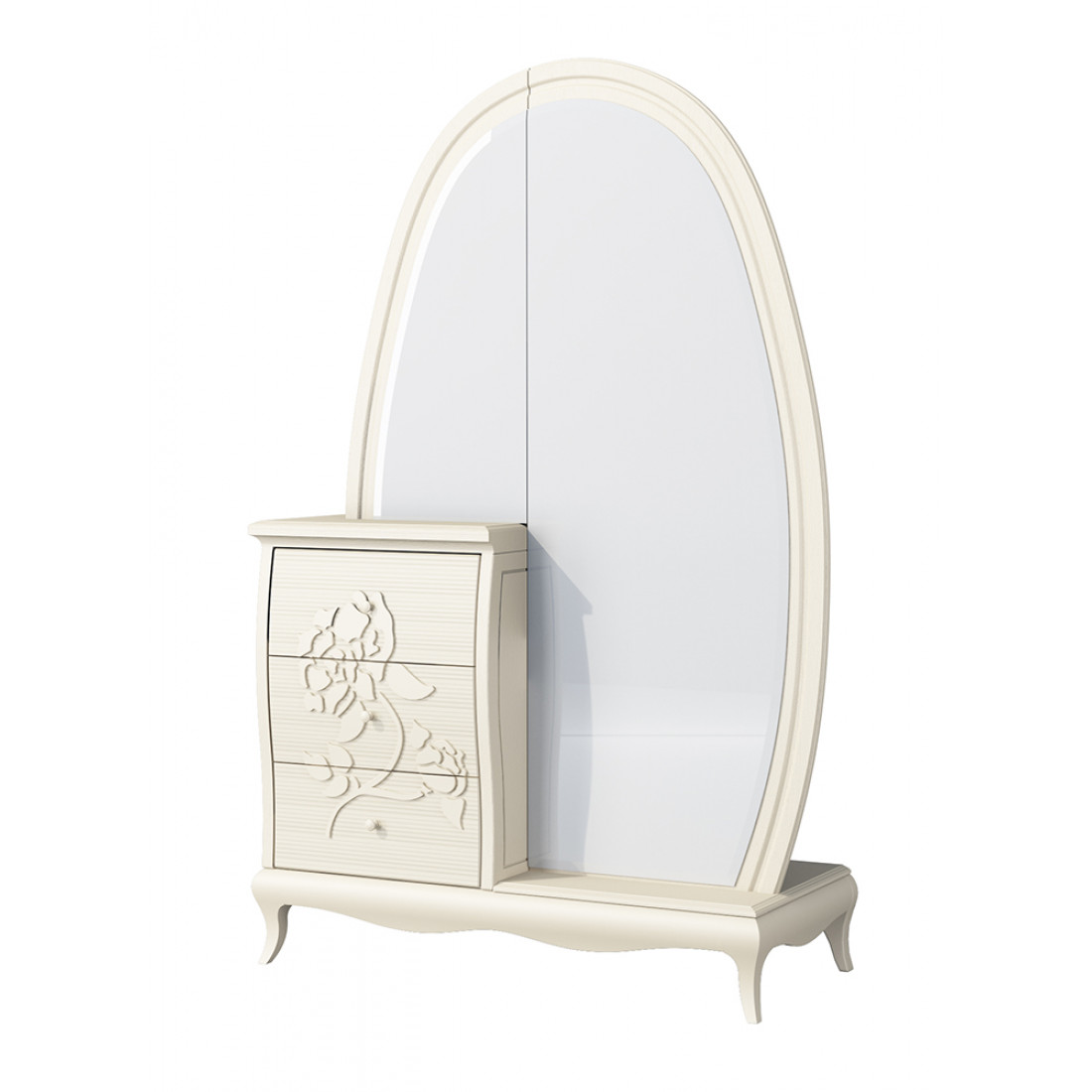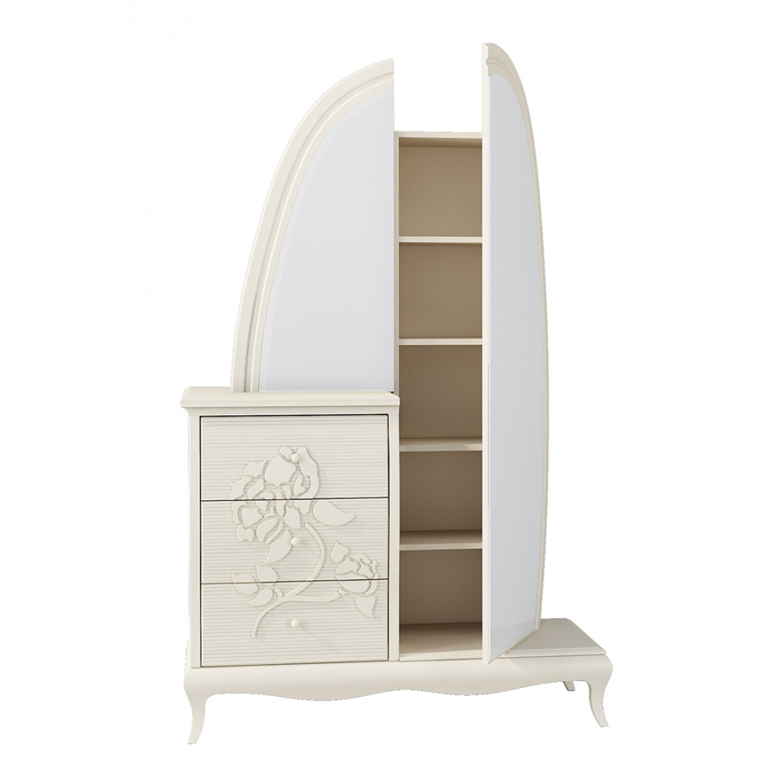 - Фасад шкафа по периметру обрамлен массивной волнообразной рамкой.