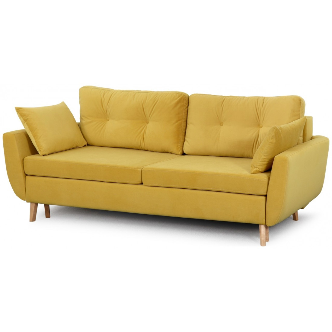 Благодаря тому, что основание модели приподнято над полом, диван не выглядит «тяжелым». Напротив, конструкция добавляет «воздуха» в интерьер. Опоры дивана изготовлены из натурального дерева (береза).
