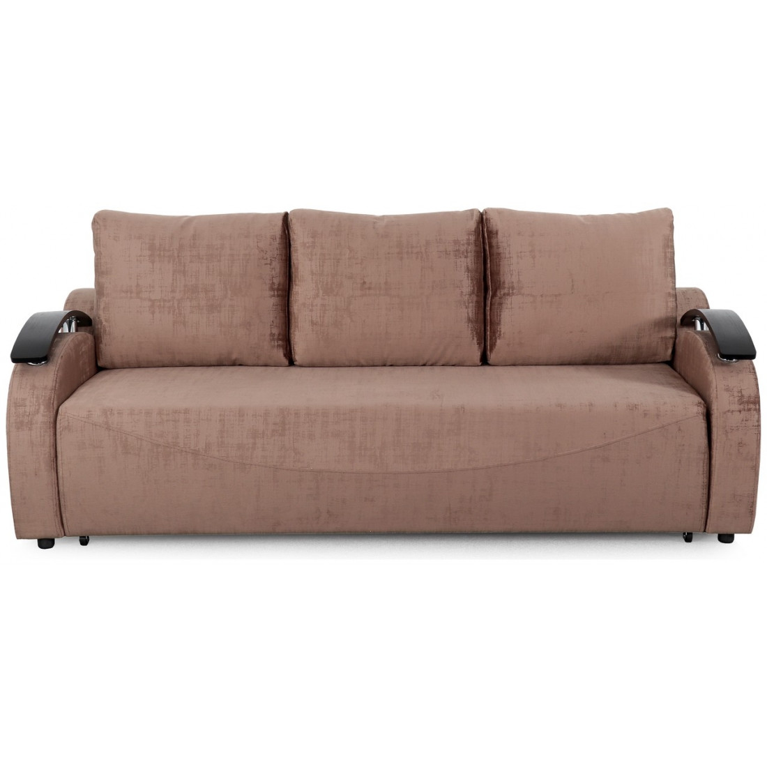 Простые геометрические формы, изогнутые линии подлокотников и стильные вставки создают запоминающийся образ дивана. Ярким акцентом, подчеркивающим стиль модели, являются ручки на царге. Однако их назначение не ограничивается декоративной функцией. Ручки выполняют и важную практическую задачу - за них удобно браться при раскладывании дивана. Благодаря достаточной мягкости приспинные подушки обеспечивают прекрасную поддержку для спины людям любого роста - это очень важно для хорошего отдыха.