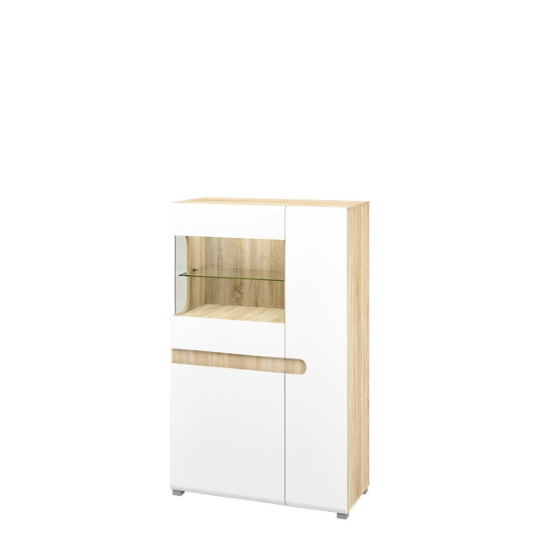 Двухстворчатый шкаф витрина для посуды в гостиную Леонардо МН-026-01/1 белый левый