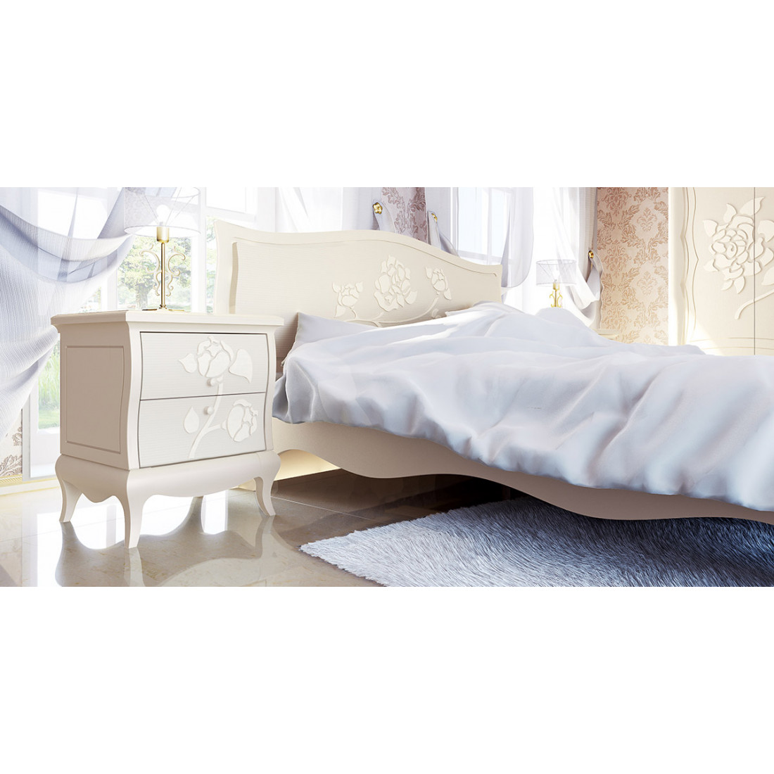 Двуспальная кровать 180x200 с подъемным механизмом Астория МН-218-01-180 серии Астория от белорусской фабрики Мебель-Неман привлекает эксклюзивными формами резного основания и эффектным дизайном спинки. Выбранный оттенок аристократичной слоновой кости с имитацией крашенного массива добавляет визуальной ценности изделию. Купить недорогую и стильную двуспальную кровать можно по недорогой цене, отдельно и дополнив другими элементами Астории.
