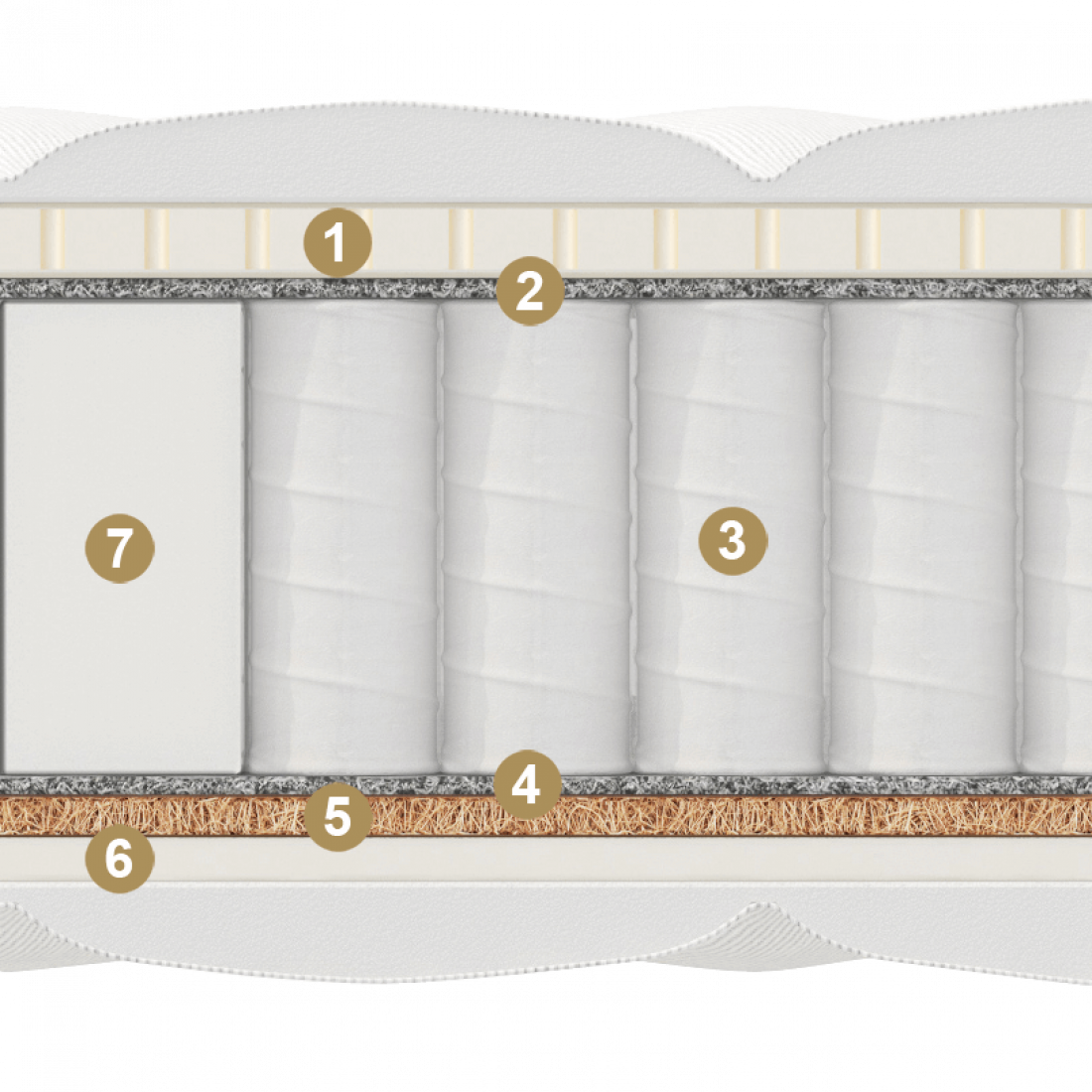 Вторая сторона матраса обладает средней жесткостью. Комфорт и отличную поддержку позвоночнику обеспечивает сочетанием 1 см плотного латексированного кокоса и 1 см эластичной универсальной пены natural foam (аналог натурального латекса). Матрас ощущается плотным и устойчивым.