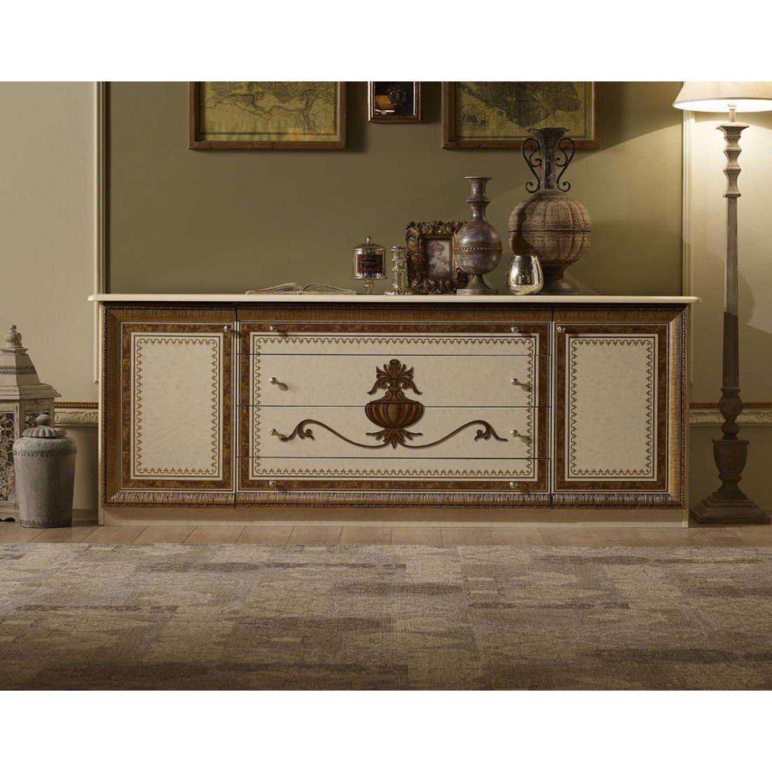 Комод Анита (бежевый глянец) от Российской фабрики «ДИА мебель» Выполнена в цвете бежевый глянец с отделкой золотых фасадов. Классический стиль придают интерьеру неповторимую уникальность и роскошь. Изгибающиеся линии придают легкость и воздушность гостиной либо столовой. Коллекция "Анита" придаст вашему дому экстравагантность и принесет свежие нотки.