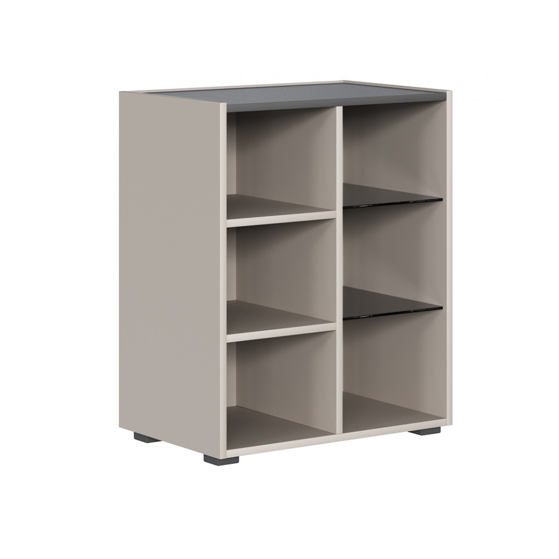 • За глухим фасадом полки ЛДСП, за стеклянным –стеклополки из затемнённого стекла;