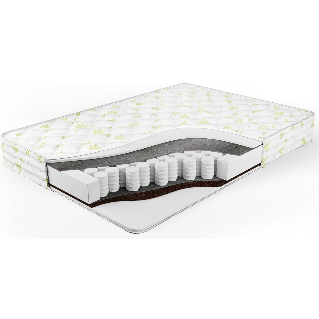 Наполнение: независимый блок TFK, высота блока 140 мм, ортопена 20 мм с двух сторон, кокосовая плита 10мм с 1 стороны, терморегулирующий слой с 2-х сторон, усиление по периметру - короб из ортопены.