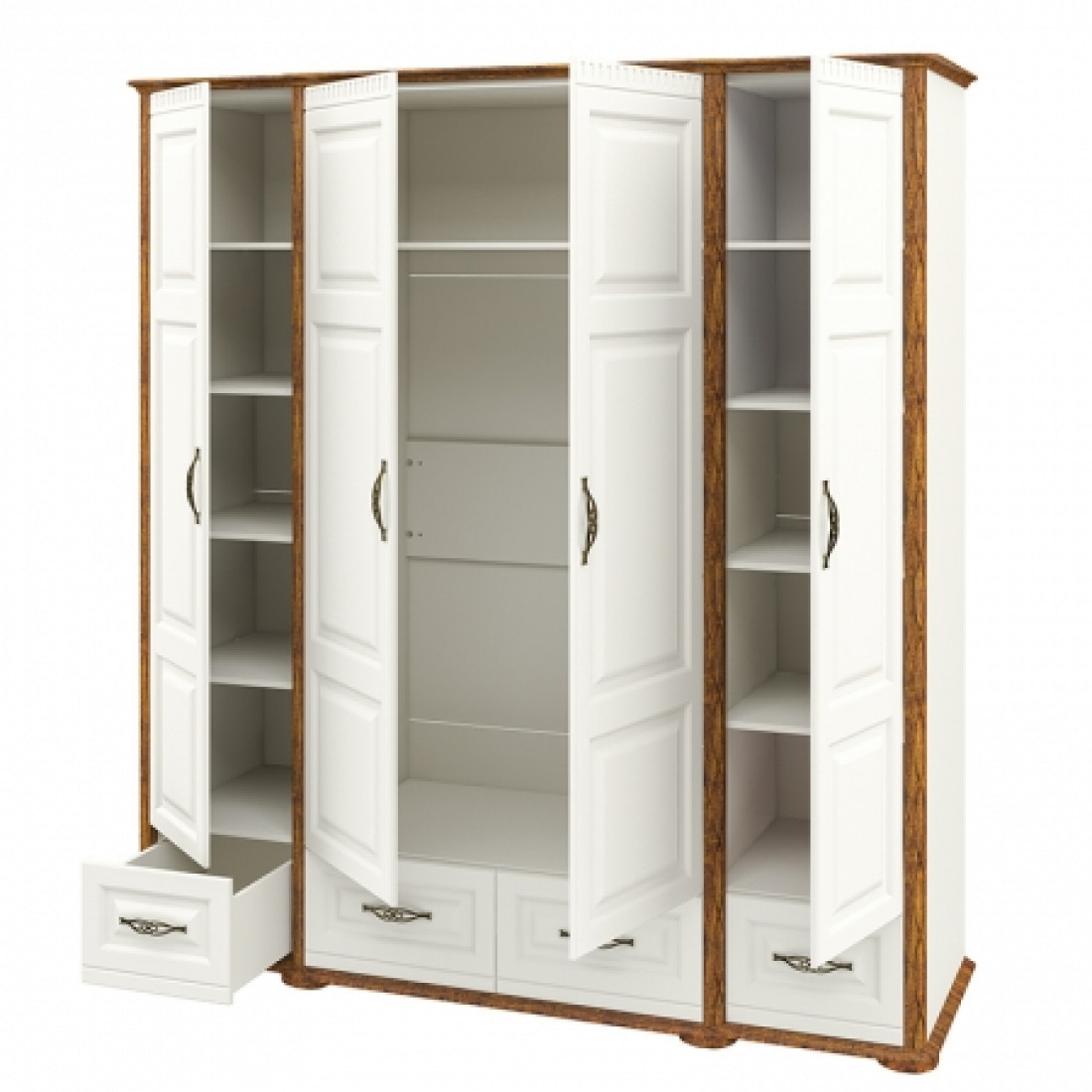 Роскошный четырехстворчатый шкаф для одежды и белья МН-126-04 в спальню новой серии Марсель (Мебель-Неман) выполнен в светлом кремовом оттенке в комбинации с цветом "дуб кантри", является настоящим подарком производителя. Купить шкаф можно для комплекта полного спального гарнитура Марсель с другими элементами серии или отдельно.