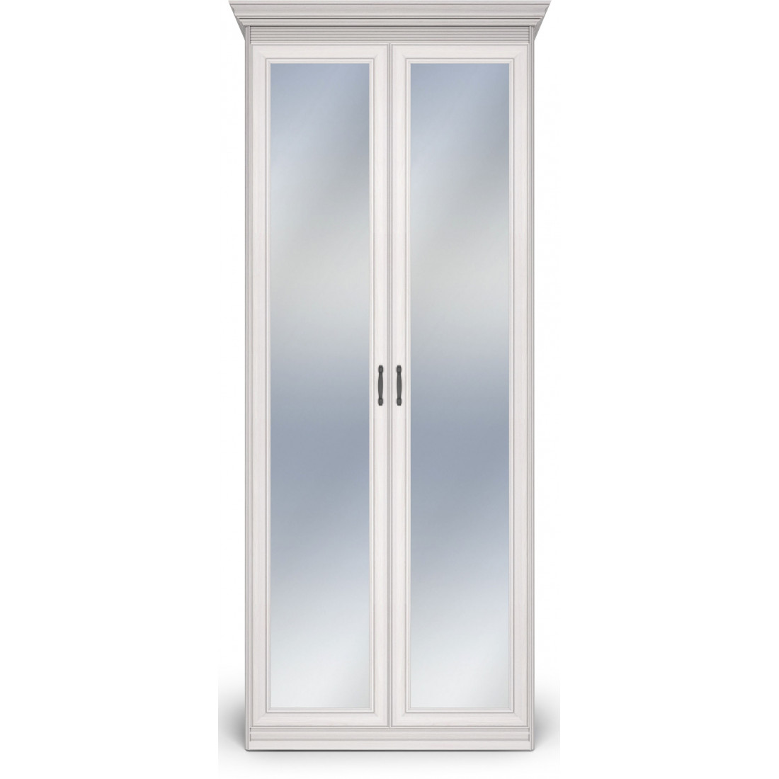 Шкаф 2-х дверный зеркальный Неаполь Ясень анкор светлый (патина "серебро")