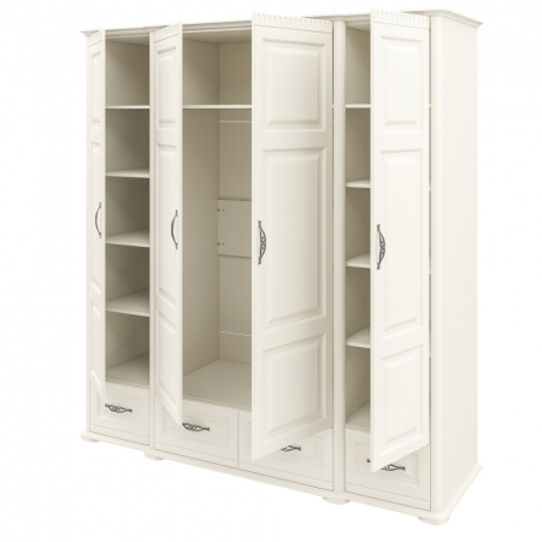 Роскошный четырехстворчатый шкаф для одежды и белья МН-126-04(1) в спальню новой серии Марсель (Мебель-Неман) выполнен в светлом кремовом оттенке является настоящим подарком производителя. Купить шкаф можно для комплекта полного спального гарнитура Марсель с другими элементами серии или отдельно.