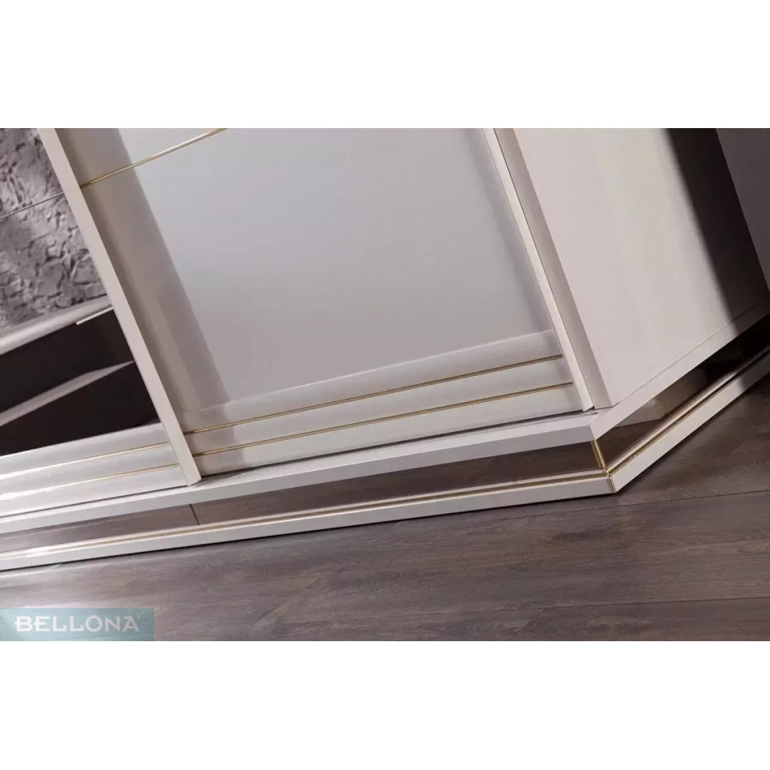 Шкаф купе ELIT-19 от турецкого производителя Беллона дополняет линейку шкафной группы коллекции Элит. Достаточно большой по своим габаритам: длина 235см, высота 2154см и глубина 70см, а так же вместительный. Внутреннее наполнение шкафа( показано на фото) прекрасно продуманно и позволяет очень грамотно разместить все необходимые вещи и постельные принадлежности. Комбинированные дверки отделаны золотистыми вставками и зеркальными поверхностями.