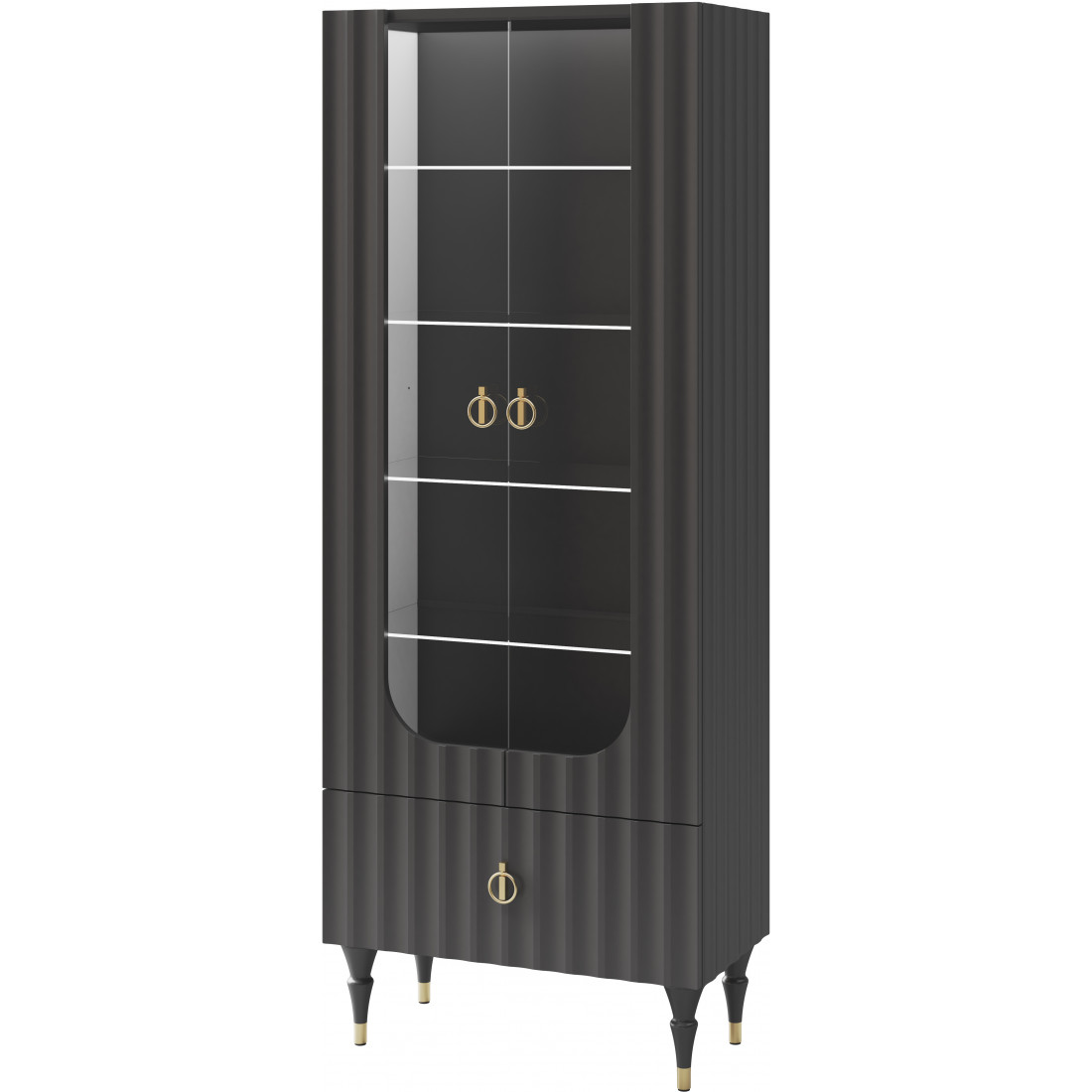 Шкаф-витрина МН-043-25 серии Лоренсо от фабрики Мебель-Неман.Петли с доводчиками, рассчитанные на десятки тысяч циклов закрывания, работают плавно и бесшумно.Фасады и боковые панели в коллекции Лоренсо выполнены с инновационным покрытием Serica от итальянских производителей. Это современное, матовое, антибликовое покрытие, приятное на ощупь SOFT-TOUCH. Поверхность защищена от царапин, благодаря специальной обработке. При возникновении микродефекта, его можно легко устранить с помощью термического сглаживания. Технология ANTI-FINGERPRINT гарантирует отсутствие отпечатков пальцев на фасадах.