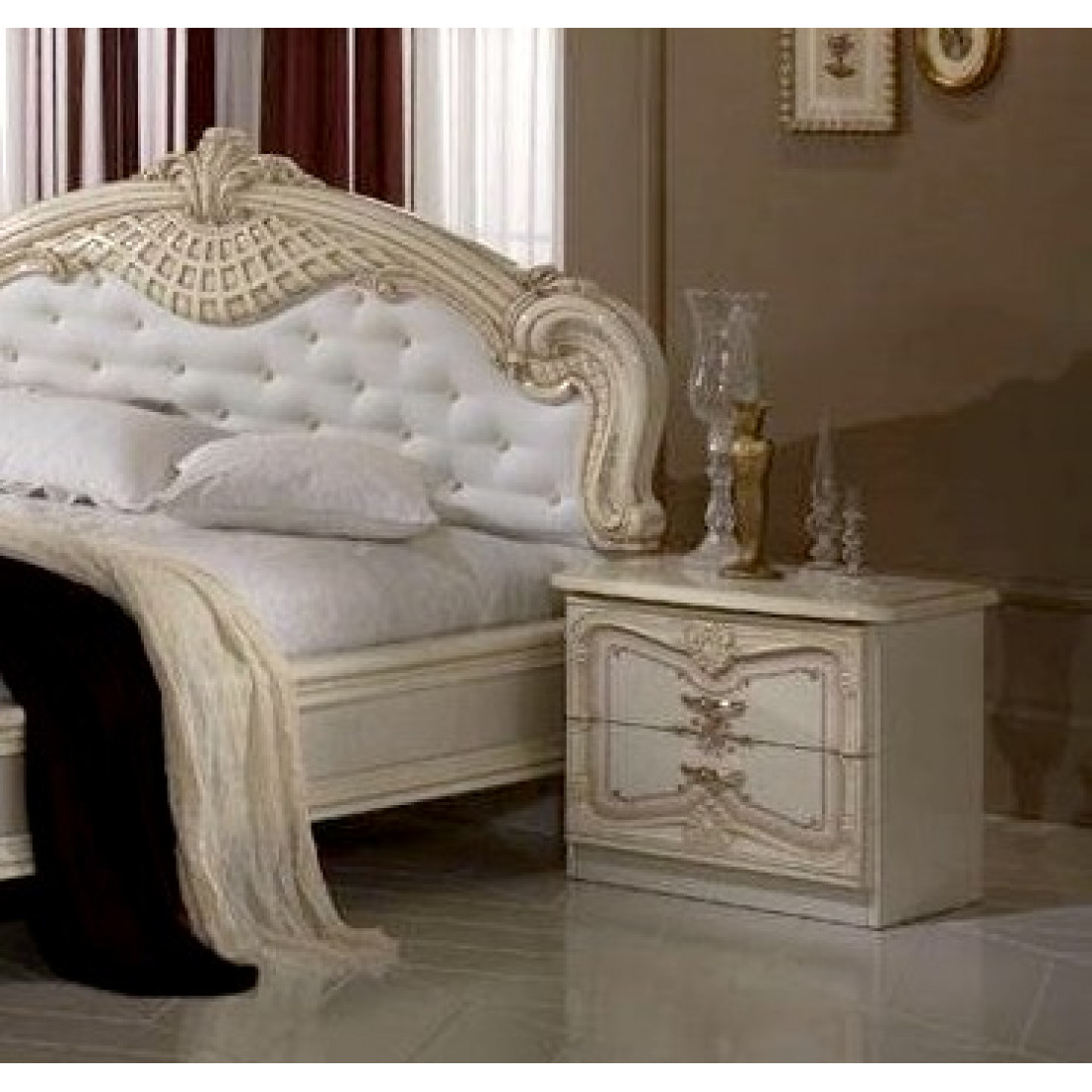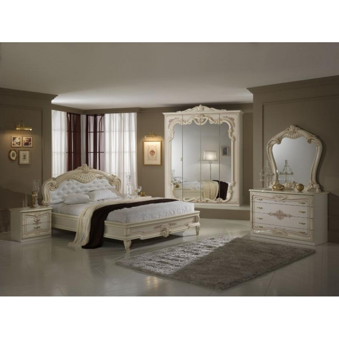 Спальня Диана (беж) от Российской фабрики «ДИА мебель» выполнена в бежевом глянцевом цвете, ручки цвета позолоты и глянцевое покрытие придадут богатую атмосферу в спальне. Такая мебель идеально подойдет для создания интерьера спальни в классическом стиле. Оригинальный рельеф фасадов задает определенный шарм всему интерьеру. Только истинные ценители красивого и прекрасного по достоинству смогут оценить спальню "Диана".
