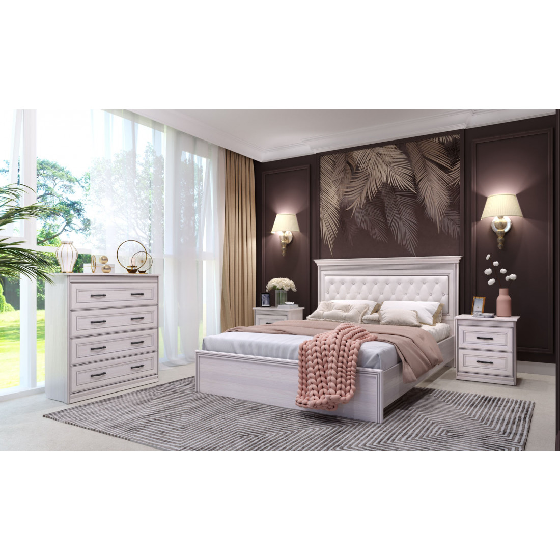 Кровать 1400/1600/1800 с ортопедическим основанием Неаполь Ясень анкор светлый (патина "серебро") экокожа polo белая