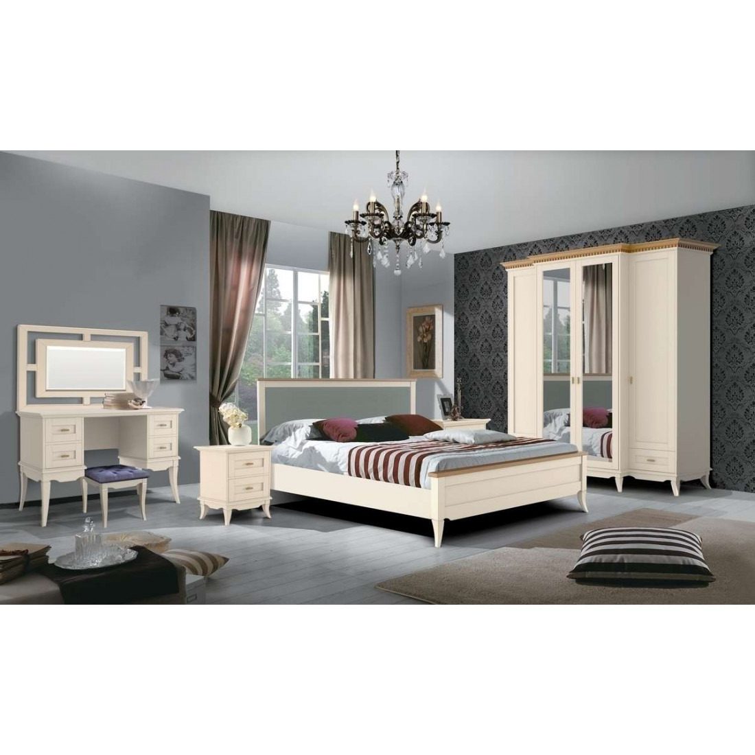 Спальня Римини воплощает в себе классические тренды. Сочетание изящных оттенков удачно освежит Ваш интерьер и придаст знакомым формам новое дыхание. Неповторимые легкость и элегантность этой мебели создадут атмосферу тепла и уюта в Вашем доме.