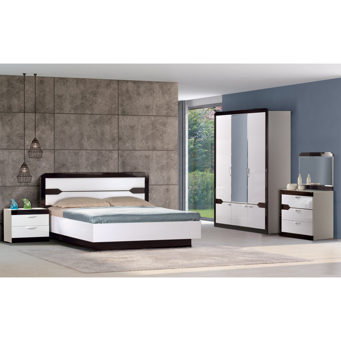 Корпус: ЛДСП, декоры – белый, венге. Основание кровати – ламели