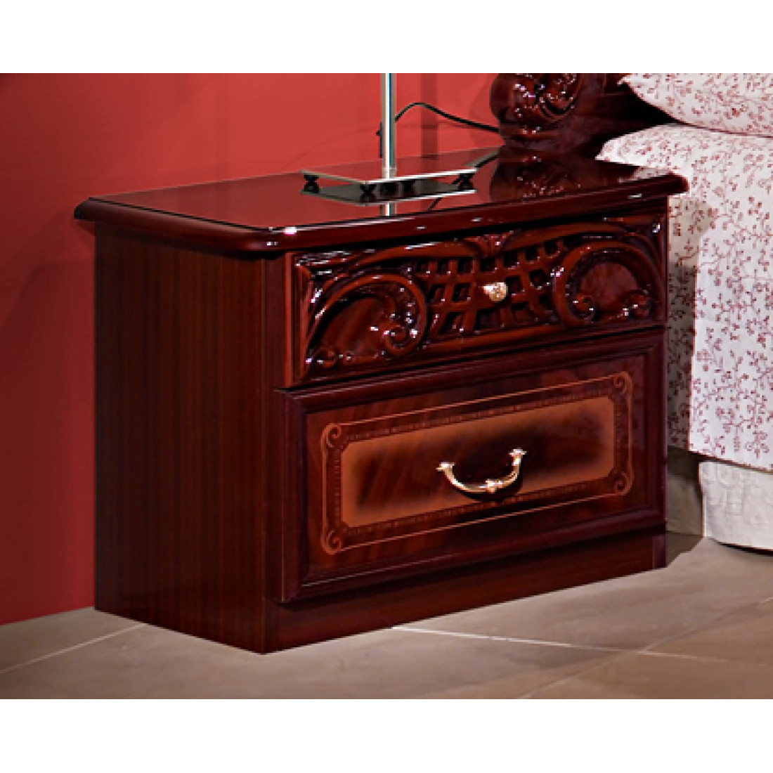 Спальня Роза (могано) от Российской фабрики "ДИА мебель". Выполнена в классическом стиле. Такая спальня коллекции Роза порадует Вас своим дизайном и многофункциональностью. Цвет могано в сочетании с глянцевым покрытием и орнаментом на фасадах, придает этой модели еще изысканности и подчеркивает прекрасное чувство стиля своего владельца. Поможет насладиться прекрасным вечером после трудного дня.