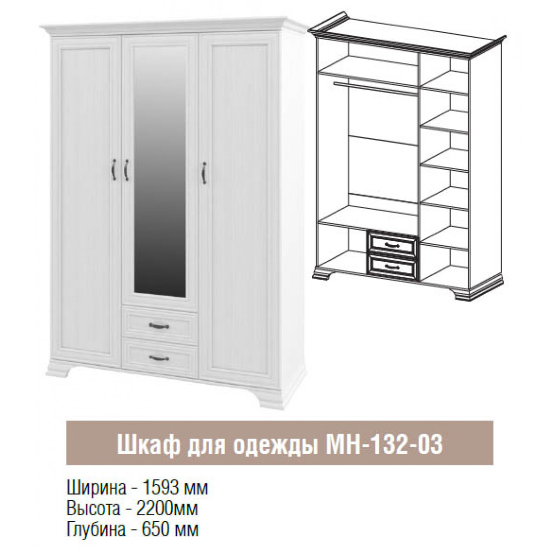 Шкаф Юнона МН-132-03 от фабрики Мебель-Неман - это трехстворчатый шкаф для одежды с зеркалом в классическом стиле с отделкой структурной фактуры, обрамленный рамочным фасадом, где металлические ручки выгодно подчёркивают стиль и изящество, всегда актуален и востребован.