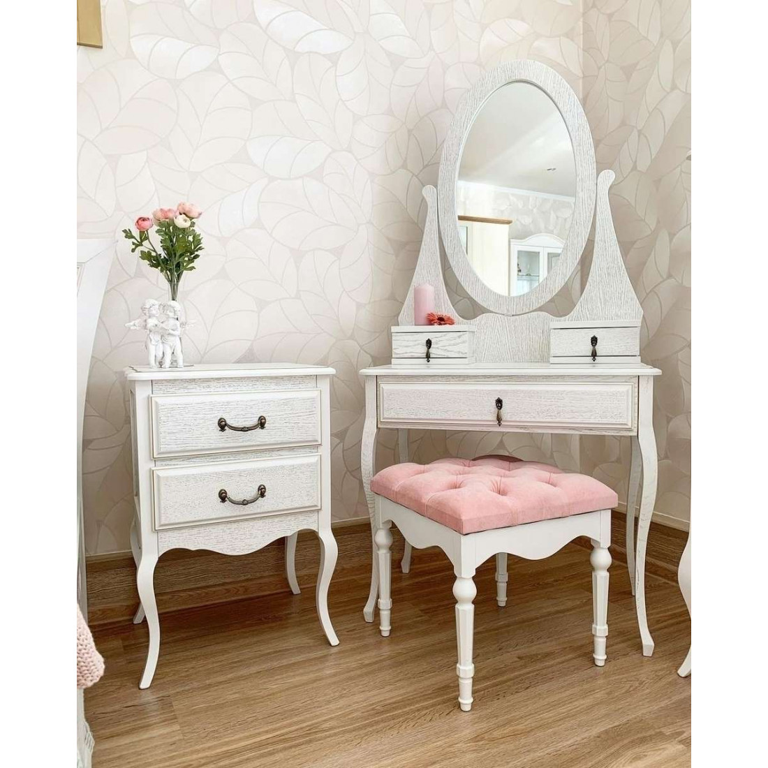 Туалетный столик Аделина MUR-117-06/07 с зеркалом воплощает в себе классические тренды. Сочетание изящных оттенков удачно освежит Ваш интерьер и придаст знакомым формам новое дыхание. Неповторимые легкость и элегантность этой мебели создадут атмосферу тепла и уюта в Вашем доме.