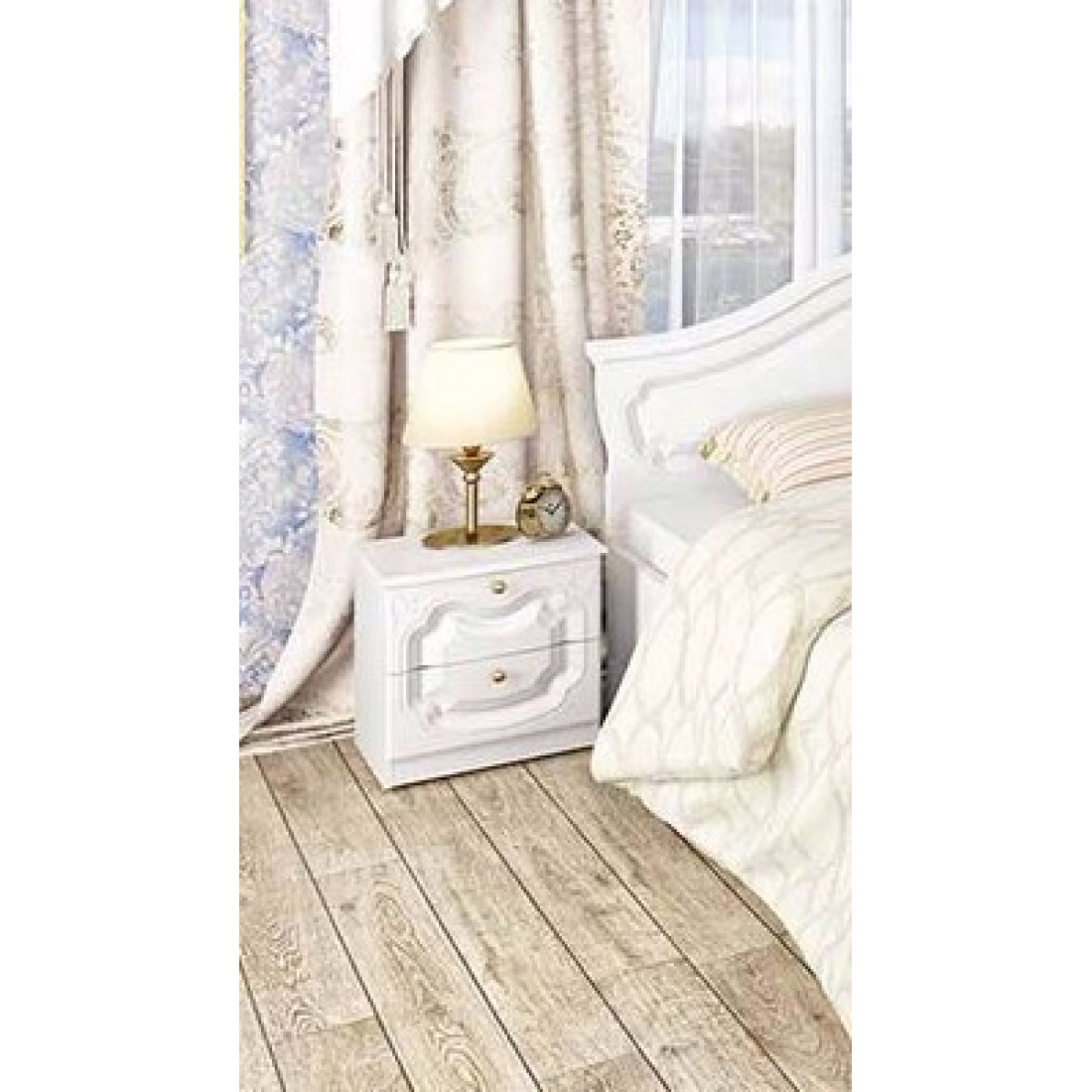 Тумба прикроватная в спальню СП-002-16 серии Орхидея от Мебель-Неман предлагается как естественное дополнение спального места. Оригинальности модели добавляет рисунок фрезы на фасадах, сходящийся единым мотивом. Купить прикроватные тумбы классического дизайна можно в любой расцветке серии – белом глянце, имитации состаренного массива черешни или ольхи.