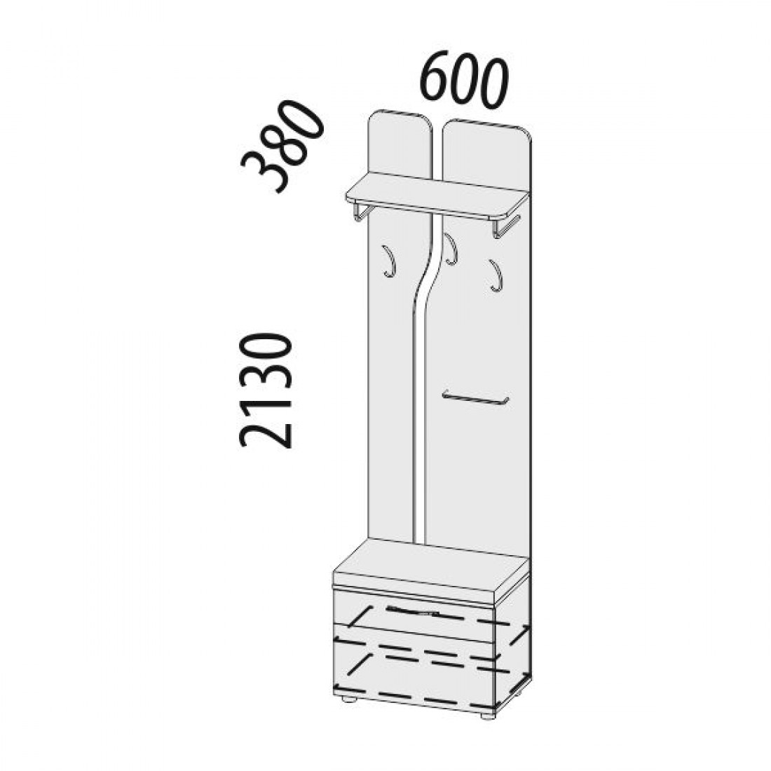 Комбинированная панель с крючками «Мэри 39.09» — элемент модульной программы прихожей «Мэри». В нижней части модуля находится тумба для обуви глубиной 38 см. В верхней — полка для головных уборов и крючки для верхней одежды. Европейская фурнитура Titus позволяет фиксировать откидную дверцу в любом положении. Тумба покрыта мягкой обивкой и выполняет дополнительную функцию сиденья. Ножки регулируются по высоте, что позволяет установить модуль на любой поверхности и скорректировать неровности пола.