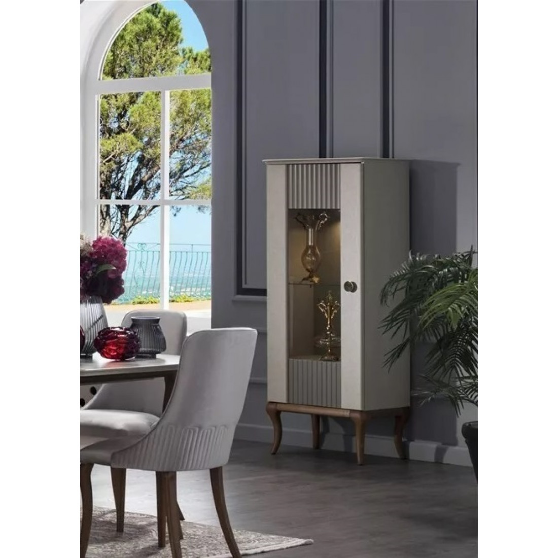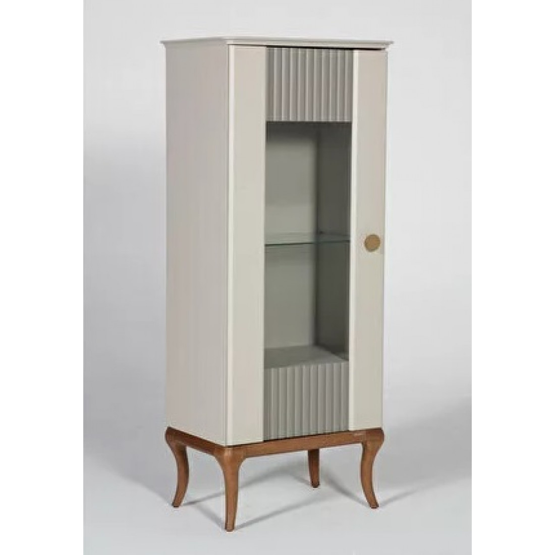 Шкаф для посуды "Песаро" выполнен в современном стиле и украсит собой любую гостиную или столовую. Светлые оттенки и ножки из массива отлично сочетаются друг с другом.