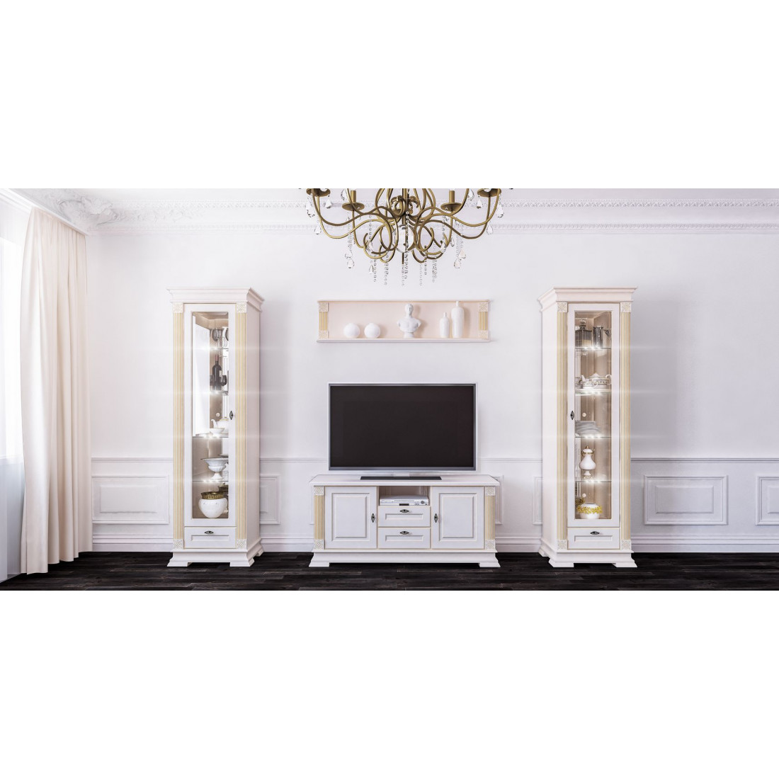 Витрина Афина послужит прекрасной основой гостиной в классическом интерьере.